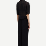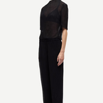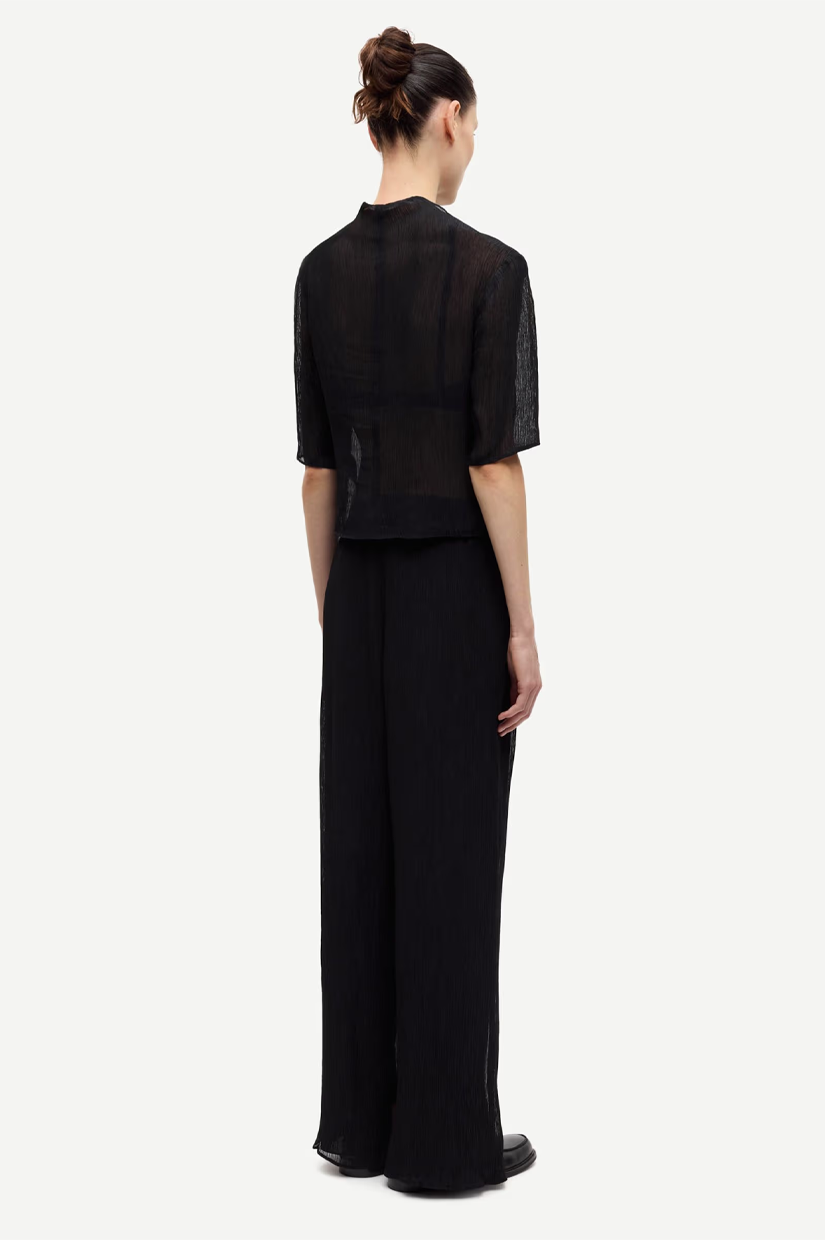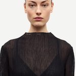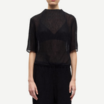 Short-sleeved semi-sheer top with a regular fit. High neck. Main material made from 100% recycled viscose.