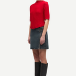 Short-sleeved semi-sheer top with a regular fit. High neck. Main material made from 100% recycled viscose.