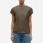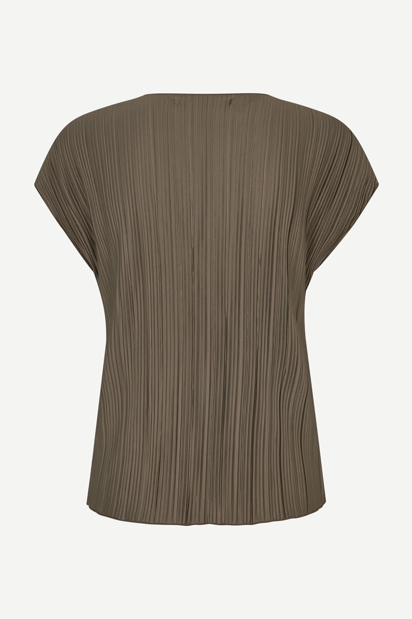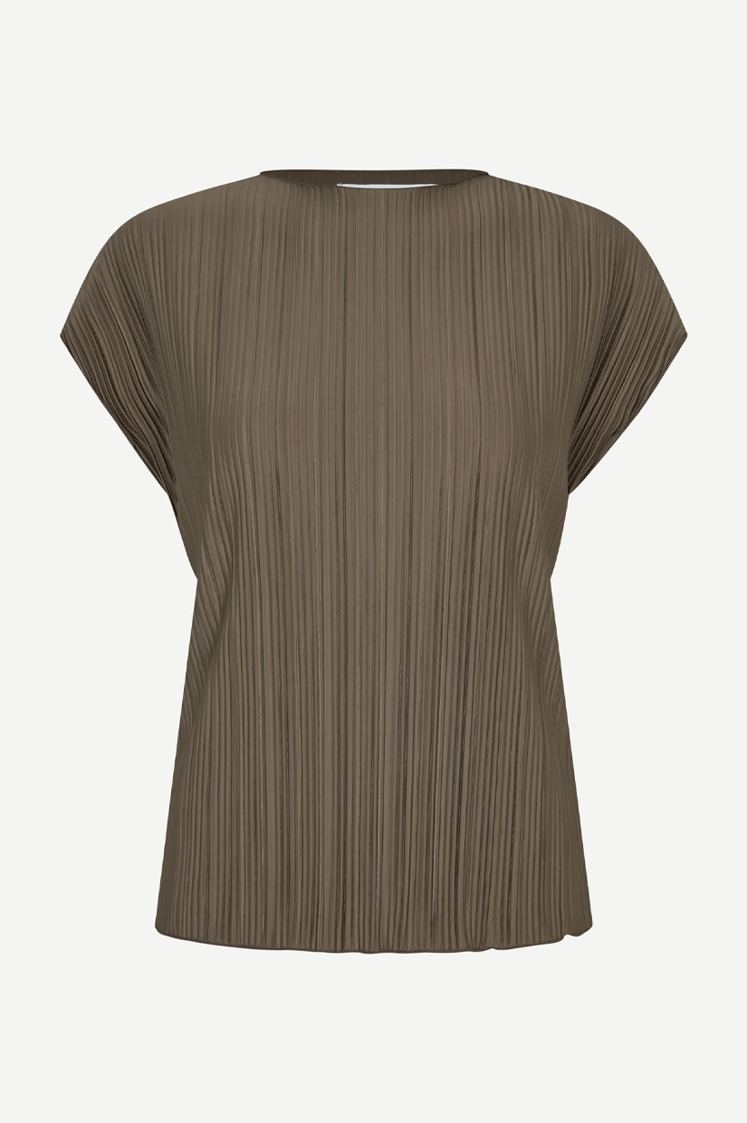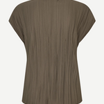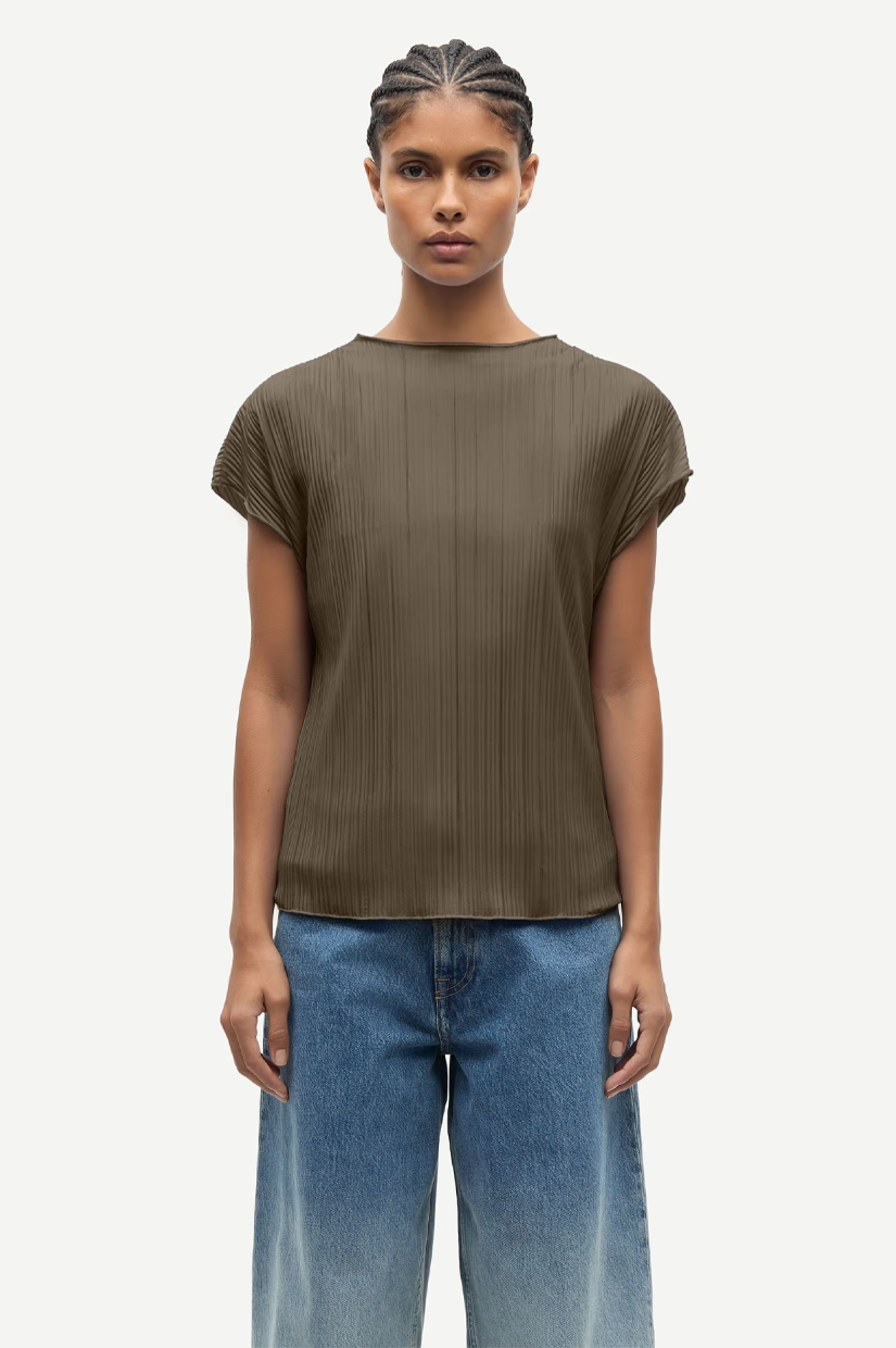 Short-sleeved pleated jersey top. Crew neck. Main material made from an elastic blend of recycled polyester.