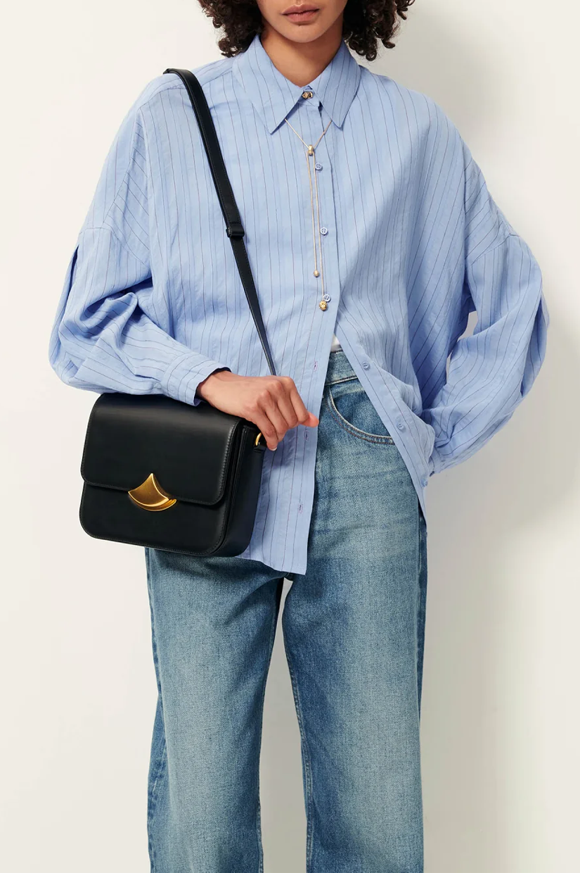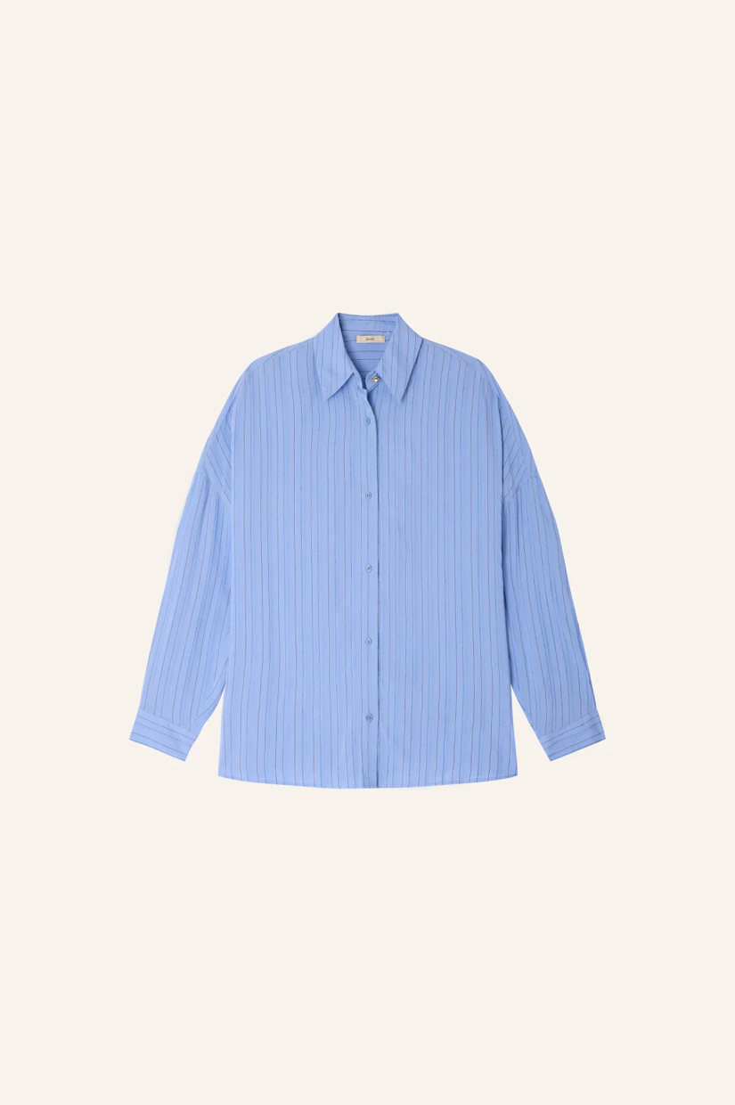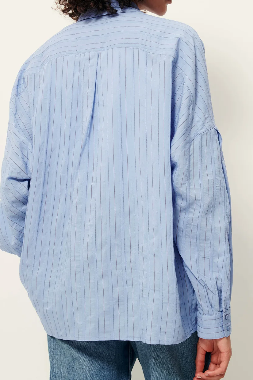 Shirt with dropped armholes and pleat detailing, in soft viscose poplin woven in Italy, featuring fine contrasting stripes exclusive to Sessùn.