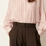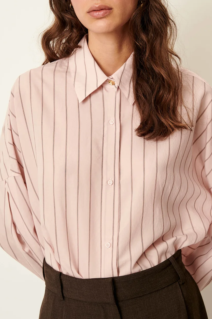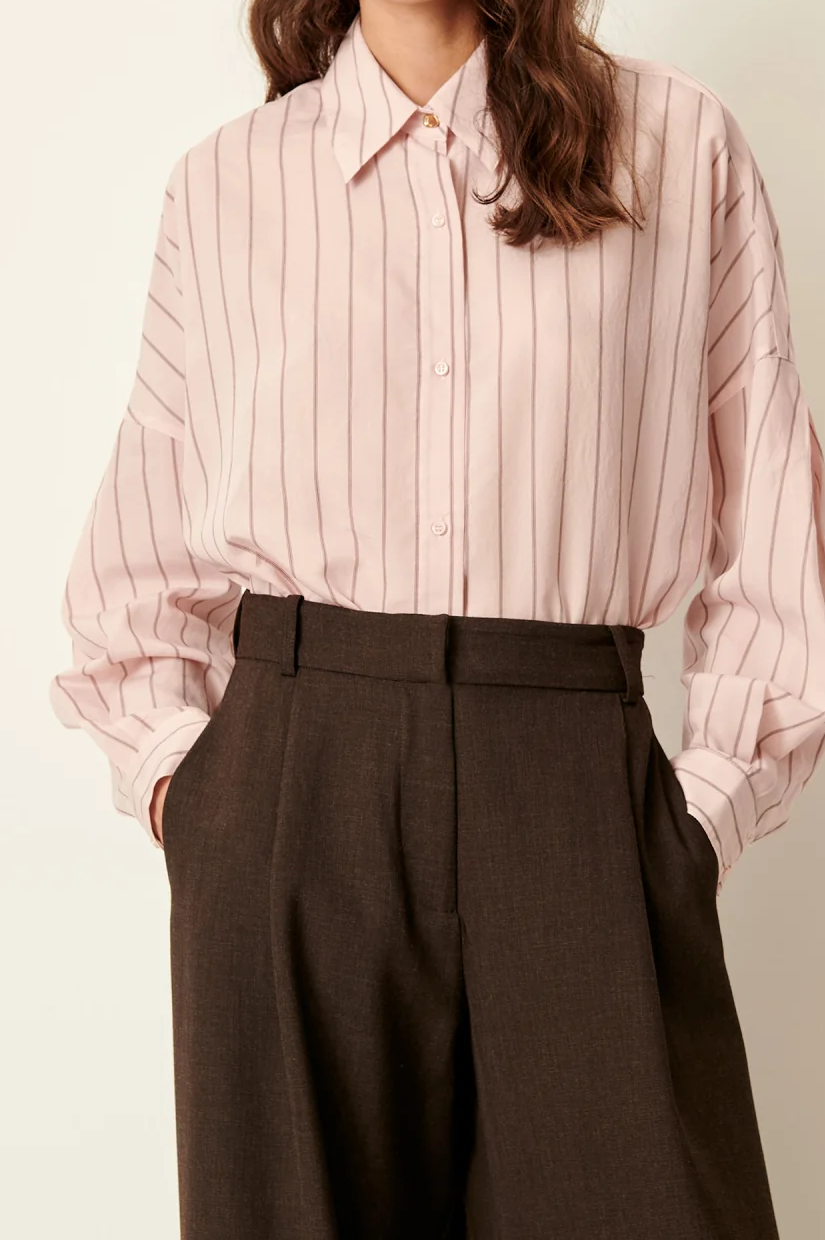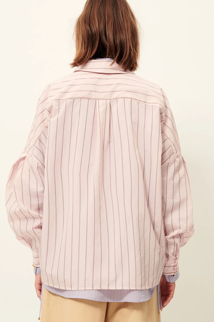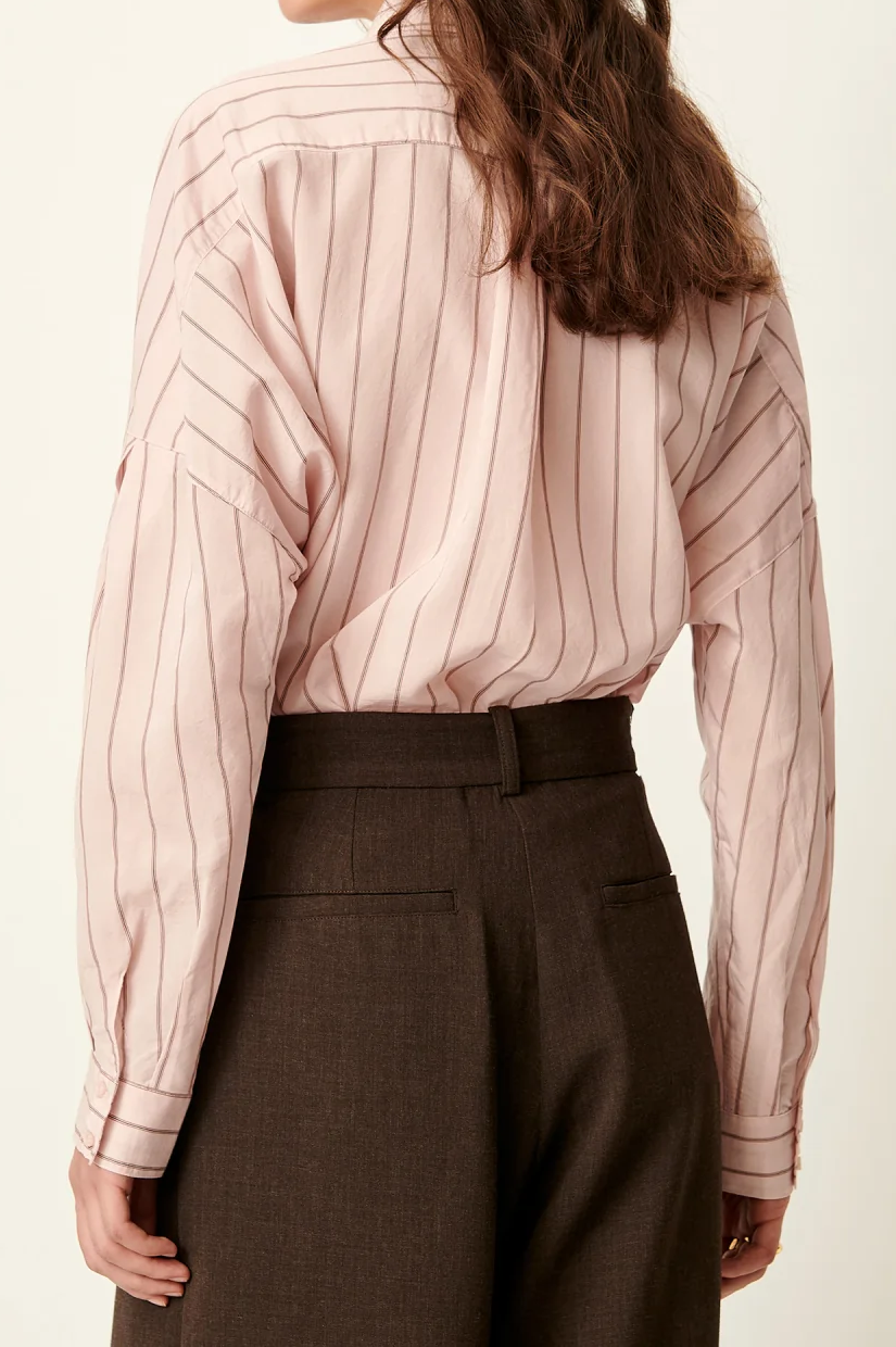 Shirt with pleated dropped shoulders made from soft, compact lyocell woven in Italy, featuring a Sessùn-exclusive contrasting thin stripe motif.