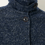 Blouson-style wool coat with a high collar and raglan sleeves in soft three-color twisted-yarn basket-weave fabric with a mottled effect, woven in Italy.