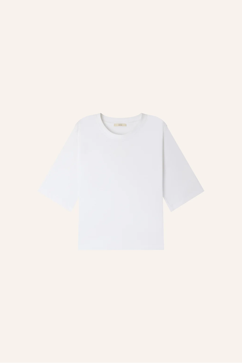 Short-sleeved T-shirt with side slits in interlock jersey knitted in Portugal.