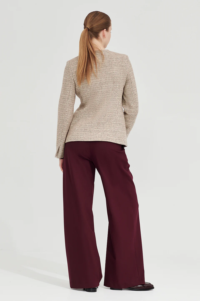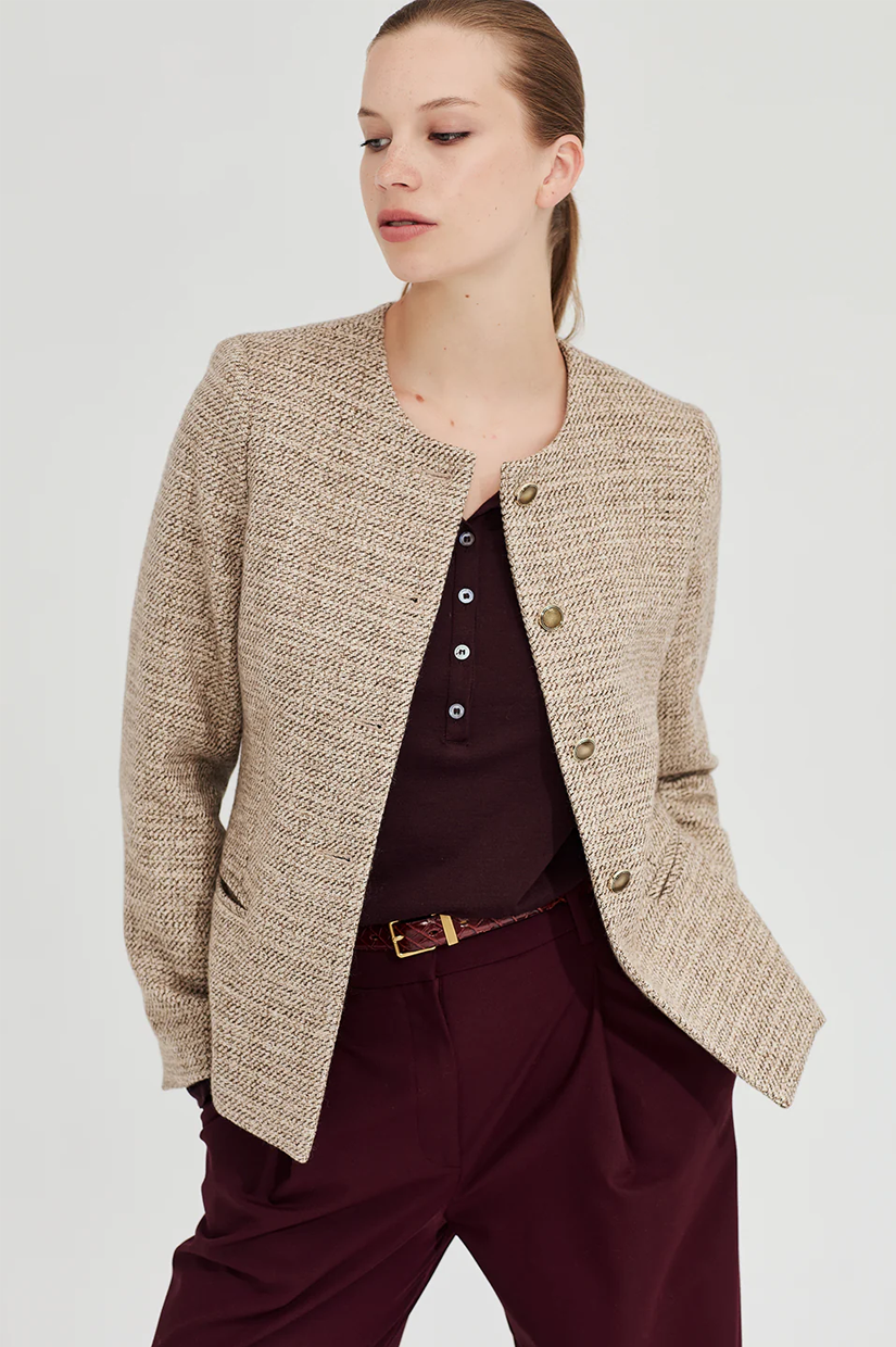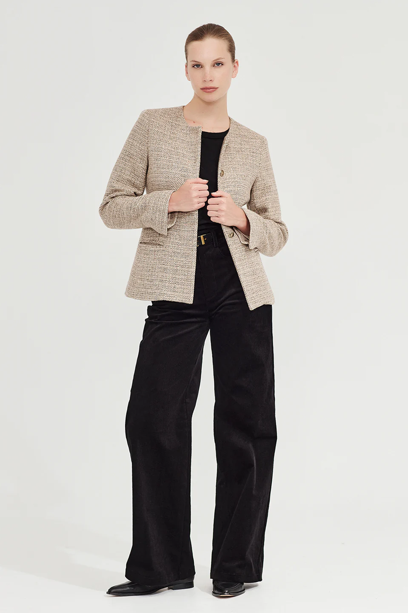 Rendered in a wool-rich biscuit tone that pairs beautifully with everything, it brings warmth and ease to everyday dressing. Style with the Corduroy Kate Trouser for a tactile take on polish, or layer back with tailored pieces for contrast.