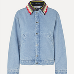 Stine Goya Collared Cropped Bomber - Denim Blue