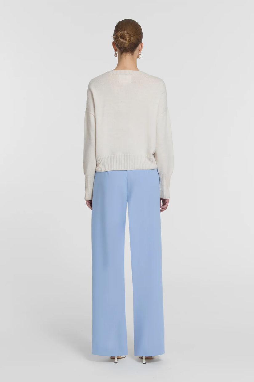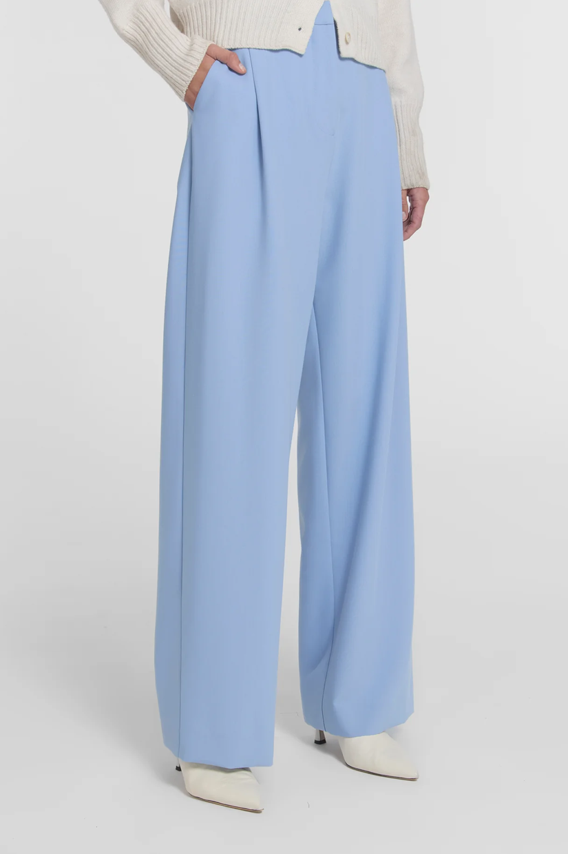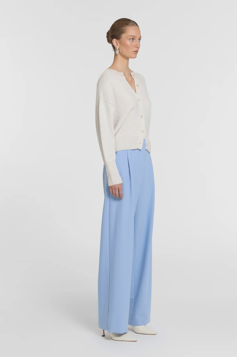 An elevated classic, the Idol Pant is realised in a summer blue hue. Falling to a full length, wide leg silhouette, it features front tucks and functional side pockets, pairing seamlessly with V&W essentials or the Divinity Shirt for effortless, transseasonal tailoring.