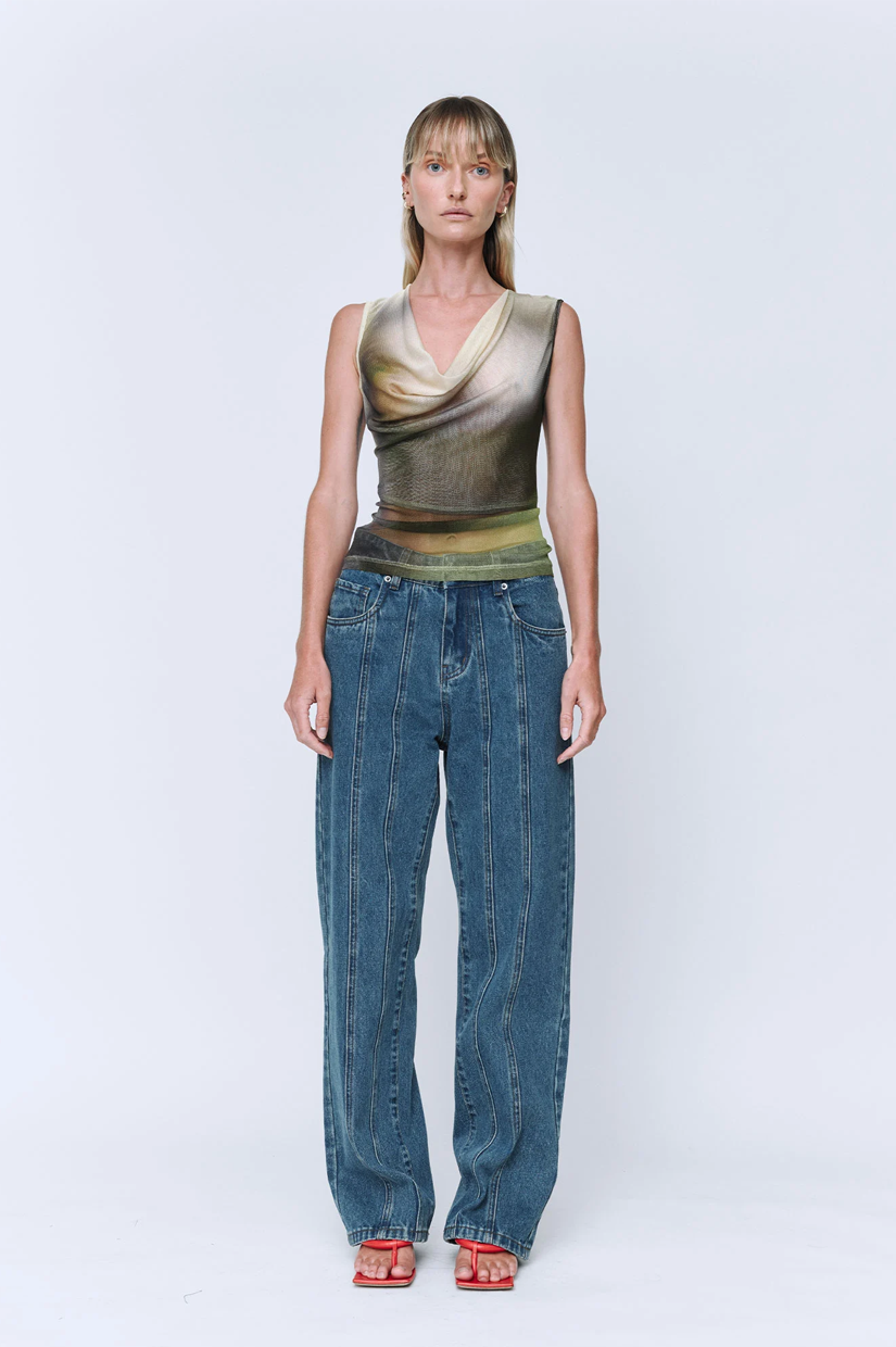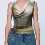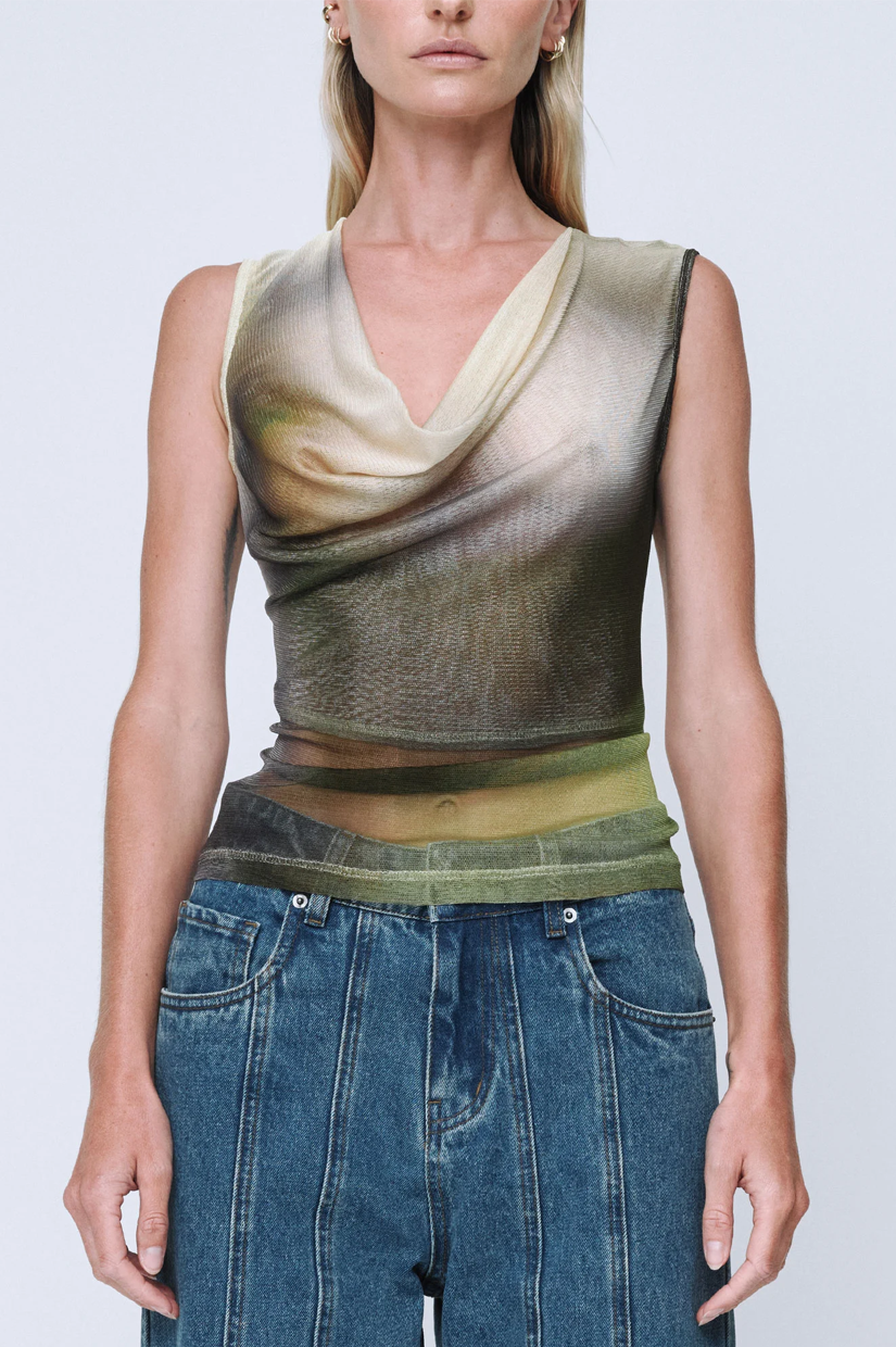 Wynn Hamlyn Cowl Silk Mesh Tank Acid Forest