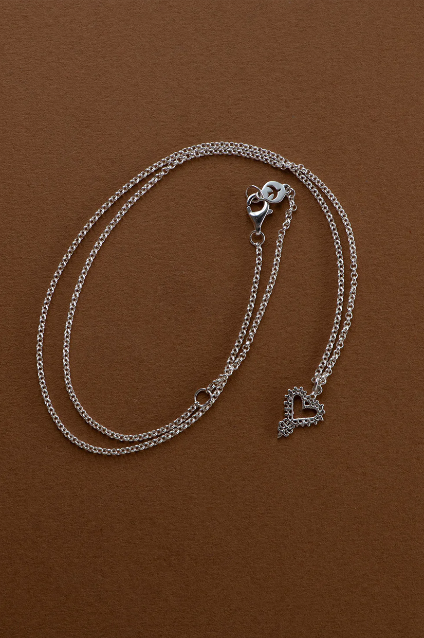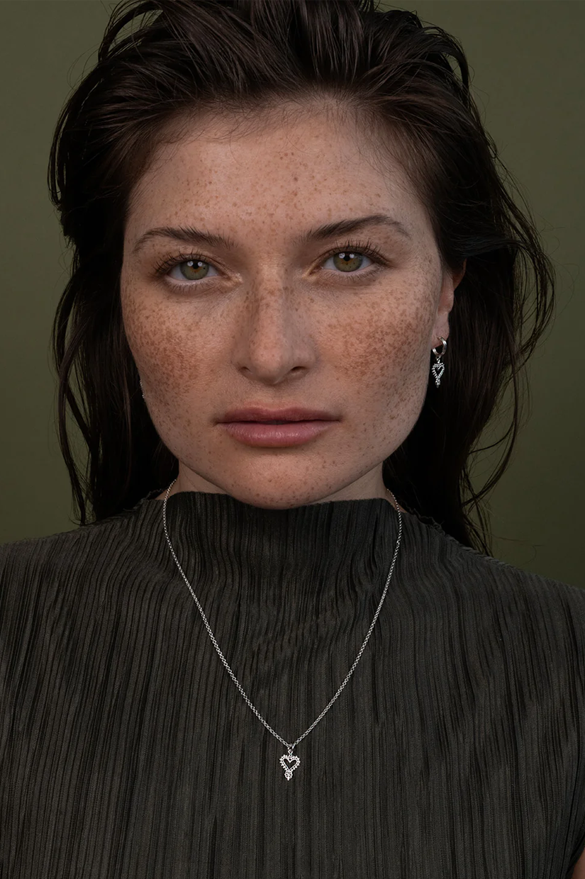 Inspired by the beauty of Spanish lands, this heart necklace celebrates feminine charm and wanderlust. Consciously crafted from recycled 925 Sterling Silver, the Mini Gypsy Heart Necklace embraces the spirit of travel and is a symbol of love and endless exploration.